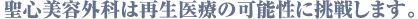 セリューションTM豊胸術(脂肪由来幹細胞移植) これまでの常識が変わる、先端「豊胸術」。美容目的では世界初。 *東京院限定 詳細はこちら ニューダーマローラ コラーゲンの自己増殖を促し、 シワ・たるみや、肝斑、ニキビ跡に効果的。 詳細はこちら 金の糸 高い美肌効果で知られる純金の糸をメスを使わずに真皮内に 埋め込むことで、自己皮膚再生能を向上させ肌の若返り・改善を求めます。 詳細はこちら