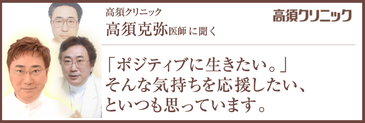 私はあくまでドクターです。高須クリニックを訪れるすべての方に満足していただけるように自らも執刀し、そして優秀なスタッフを育成していくことが美容外科のリーダーとしての責任と考えています。誰もが自分に自信を持ち、より輝いて生きていけるようお手伝いすることが私の仕事であり、生き甲斐ですから。