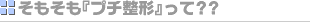 じゃあ、何がプチ整形なのかというと、美容医療の技術の中で、手術と比較して体に少ない負担でかつ短時間で行え、効果を実感し易い治療の事を、ひとくくりにして『プチ整形』と呼んでいることが多いようです。 |